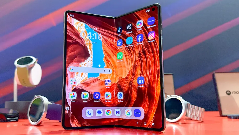 Motorola debuted its book-style Razr Fold, featuring high-resolution cameras and a dual display system.