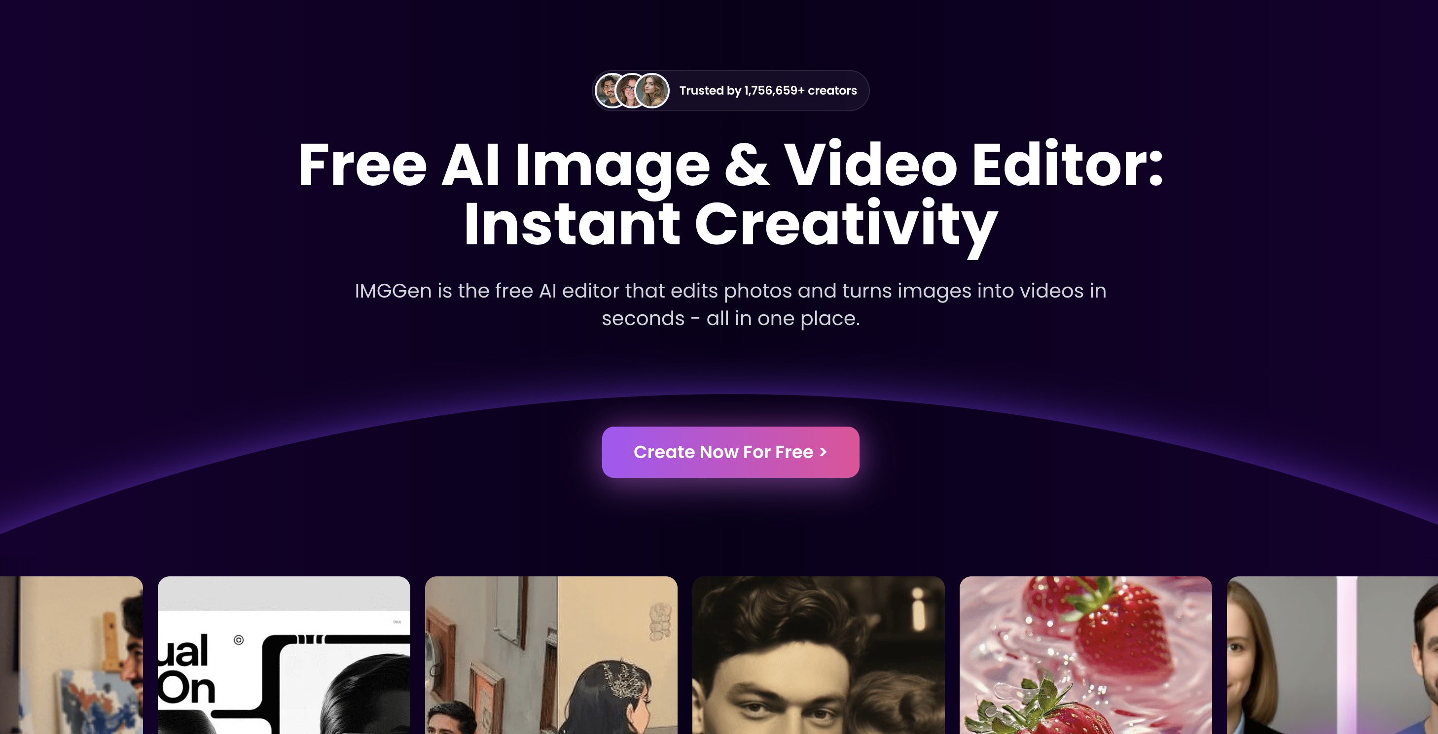 IMGGen is a cutting-edge AI image editing and generation platform. They offer a free AI image editor that enables users to edit, fix, and transform photos in seconds, with features such as face swap, style transformation, object removal, and background changer. Additionally, IMGGen allows users to generate unlimited free AI images with high-quality visuals, artistic creations, and photorealistic images without watermarks or requiring sign-up, providing 5 free credits daily.